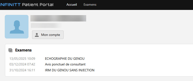 L'interface liste vos examens réalisés depuis mi-octobre 2024.